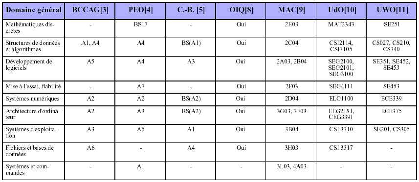 Tableau 1: Aperçu des sujets fondamentaux en génie logiciel
